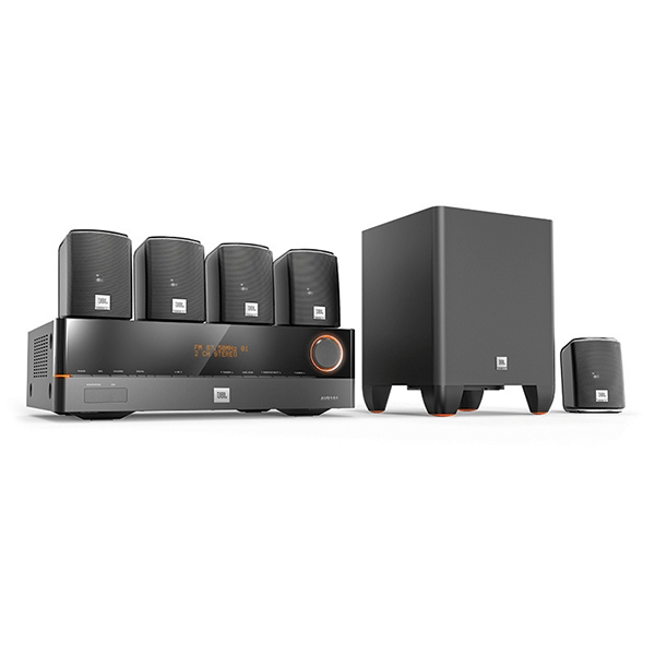 The JBL Cinema 610 features a down-firing 8" powered subwoofer with a built-in 60W amplifier. The subwoofer is capable of producing low frequency sound down to 38Hz for added bass impact.